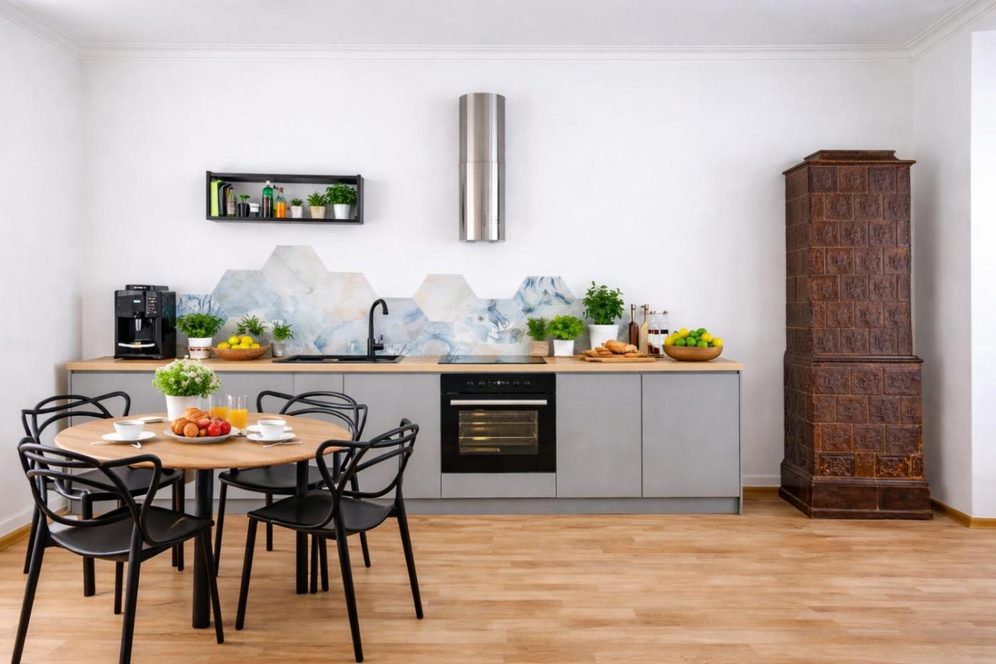 Room #1584675101. This apartment comprises 1 living room, 1 separate bedroom and 1 bathroom with a walk-in shower and free toiletries. In the well-equipped kitchen, guests will find a stovetop, a refrigerator, a dishwasher and kitchenware. The air-conditioned apartment provides a flat-screen TV with streaming services, a washing machine, soundproof walls, a tea and coffee maker as well as garden views. The unit offers 3 beds. Apartament - 5 osobowy. Powierzchnia pokoju ok.: 45 mkw.