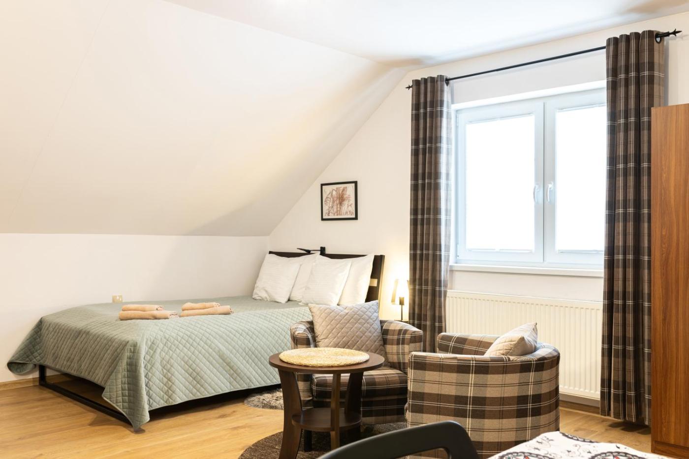Rodzinny apartament typu Studio. The studio offers a tea and coffee maker, a seating area, as well as a private bathroom featuring a shower and a hairdryer. Meals can be prepared in the kitchenette, which is fitted with a stovetop, a refrigerator, kitchenware and a microwave. The studio features a flat-screen TV, a dining area, a wardrobe, a sofa as well as garden views. The unit offers 2 beds. Studio - 4 osobowy. Powierzchnia pokoju ok.: 21 mkw. ;